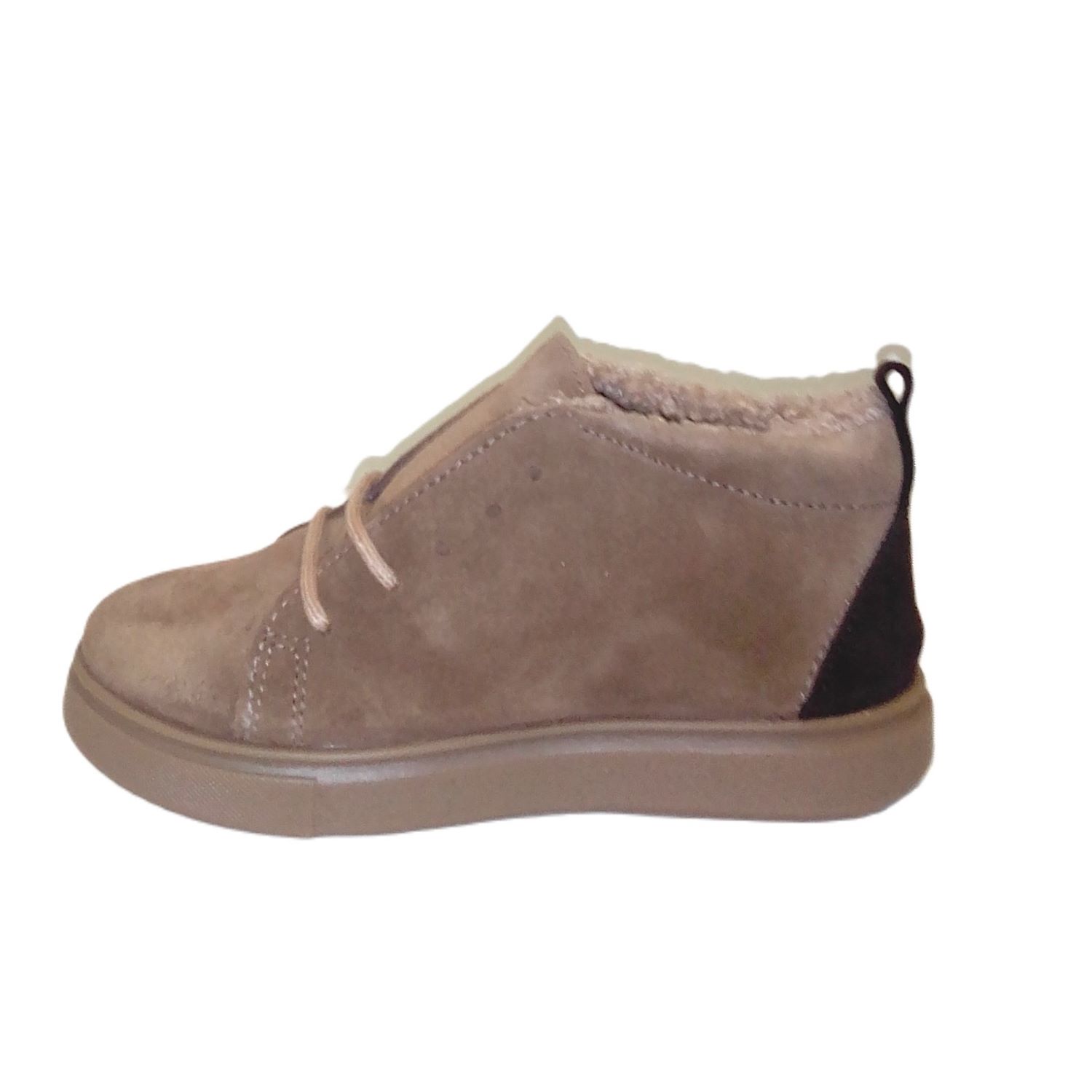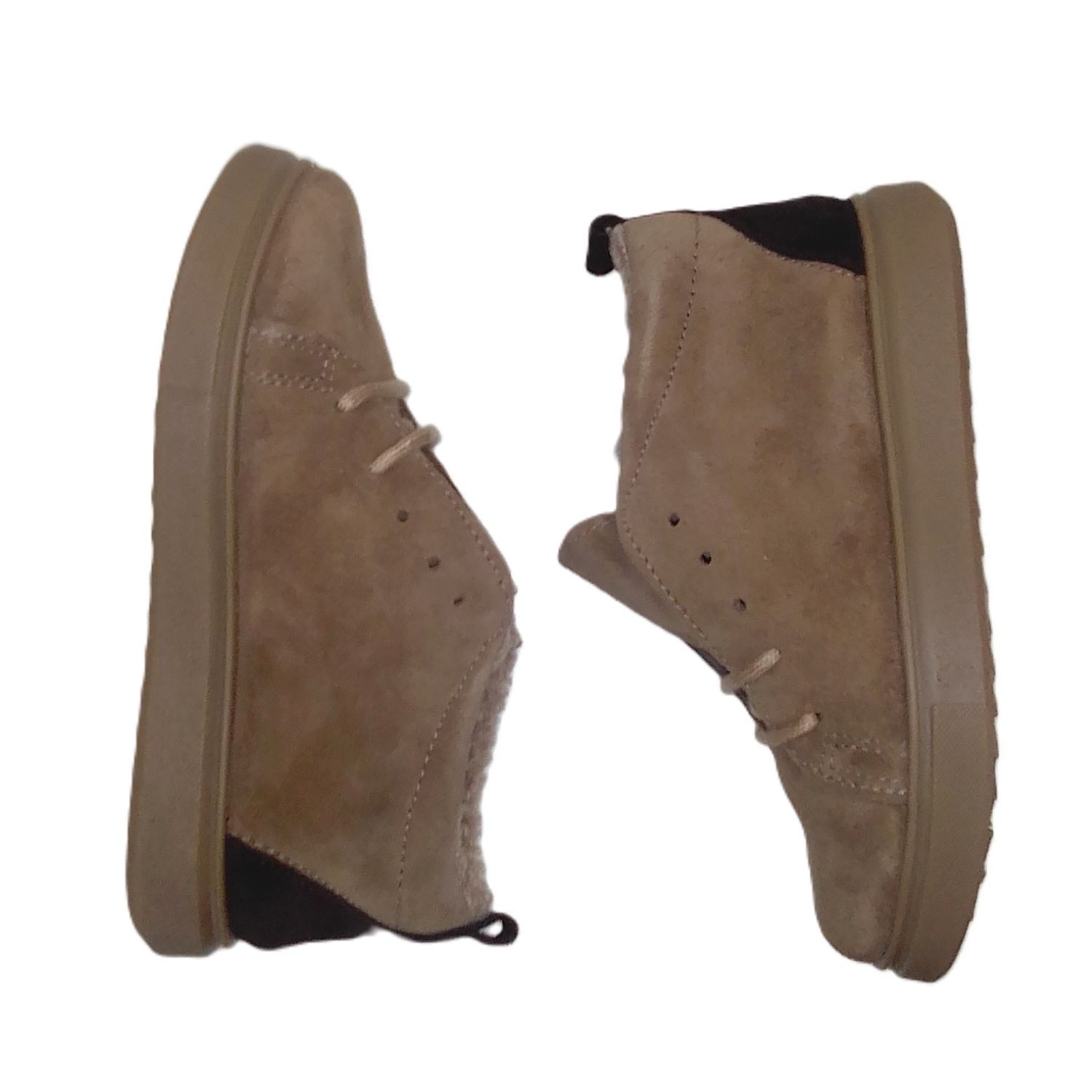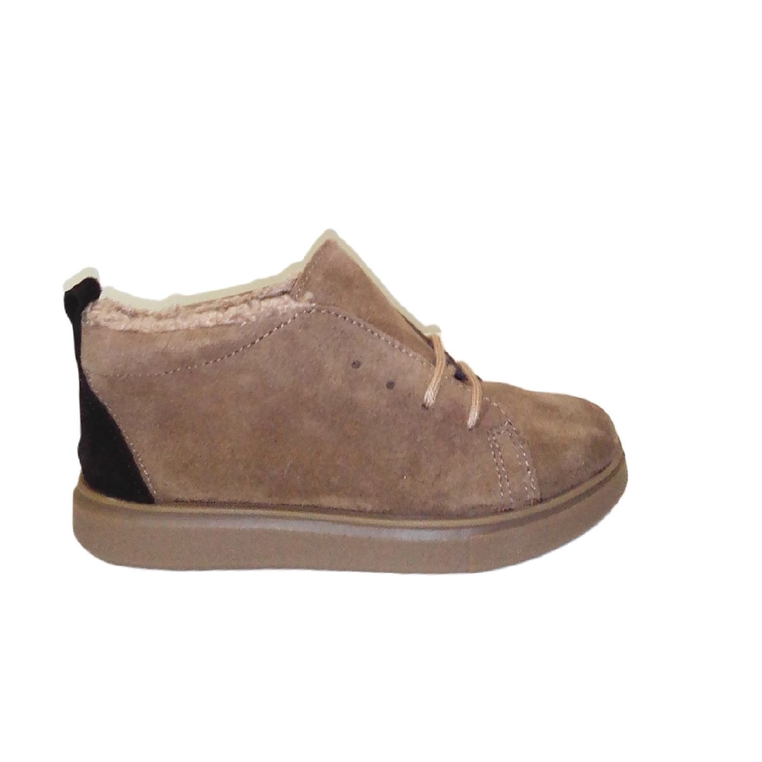 Botas cortas de sport en piel serraje hidrofugado camel. Detalle en serraje marron a contrate en el talon. Borreguito en el cuello interior. Con cordones