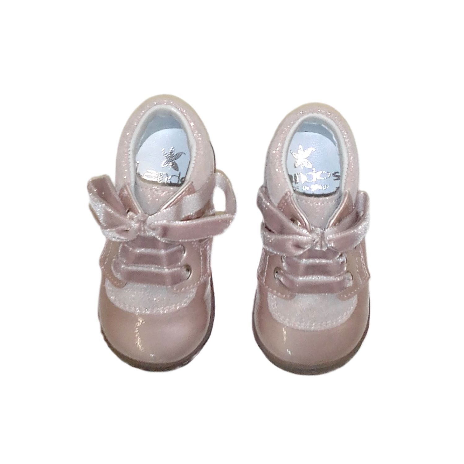 Coleccion Primeros Pasos. Con cordones de terciopelo rosas.