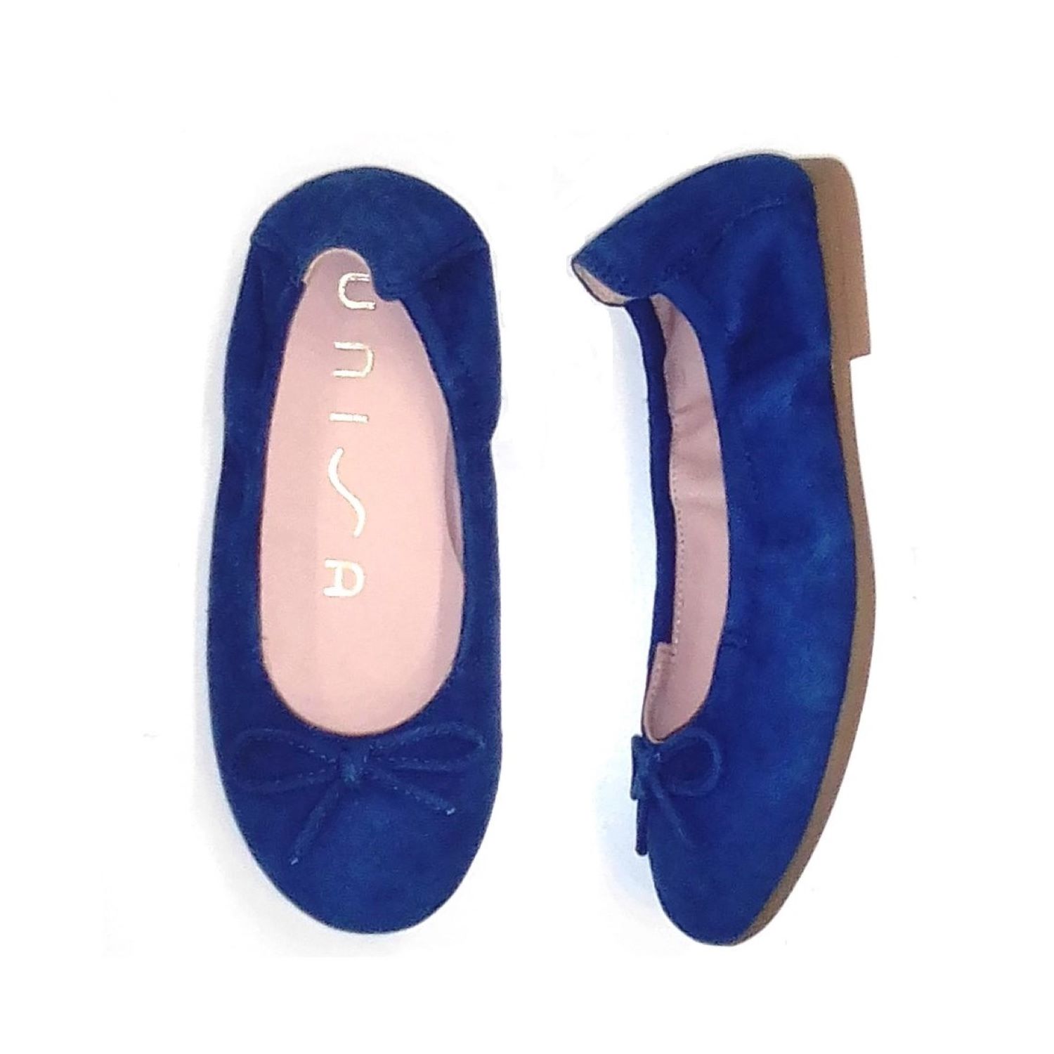 Bailarina en piel ante azul Klein. Con elastico que ajusta perfectamente