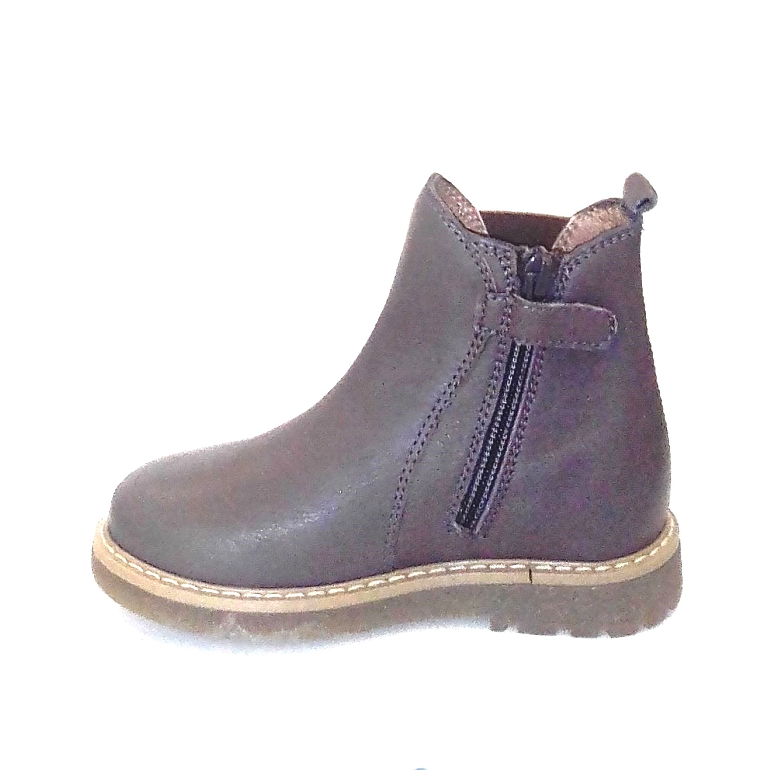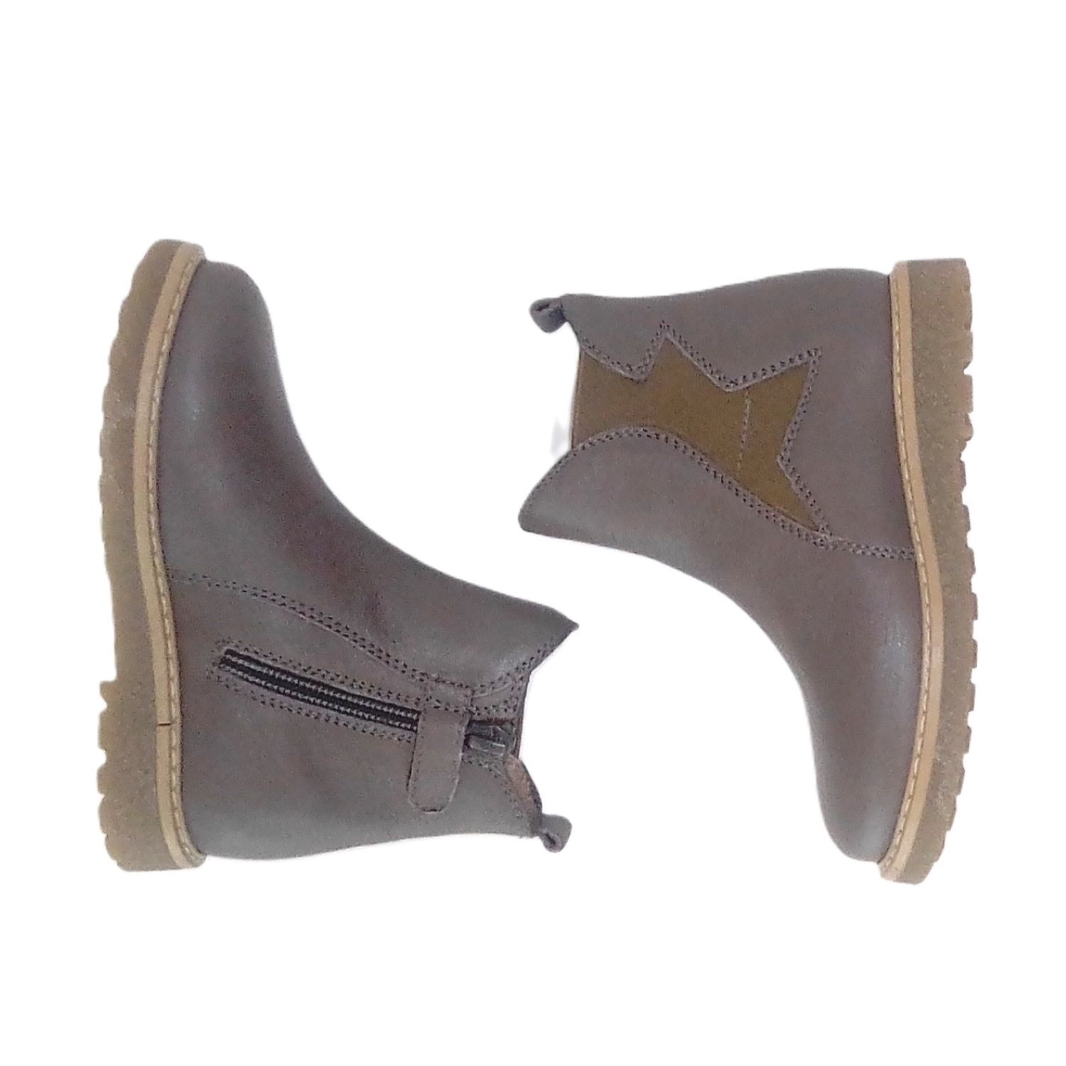 Bota corta en piel napa taupe. Detalle de elastico en forma de estrella. Con cremallera, Suela de crepe.