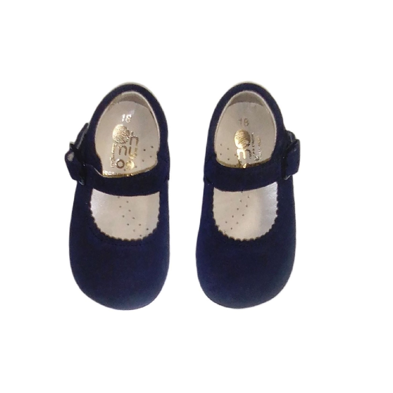 Merceditas en piel luxe ante marino. Coleccion Primeros Pasos. Con hebilla