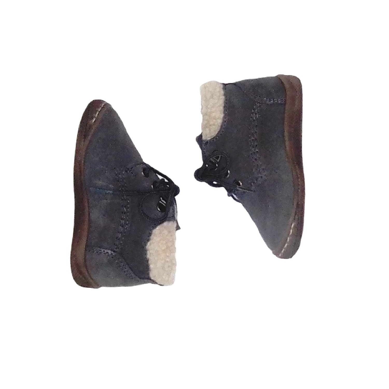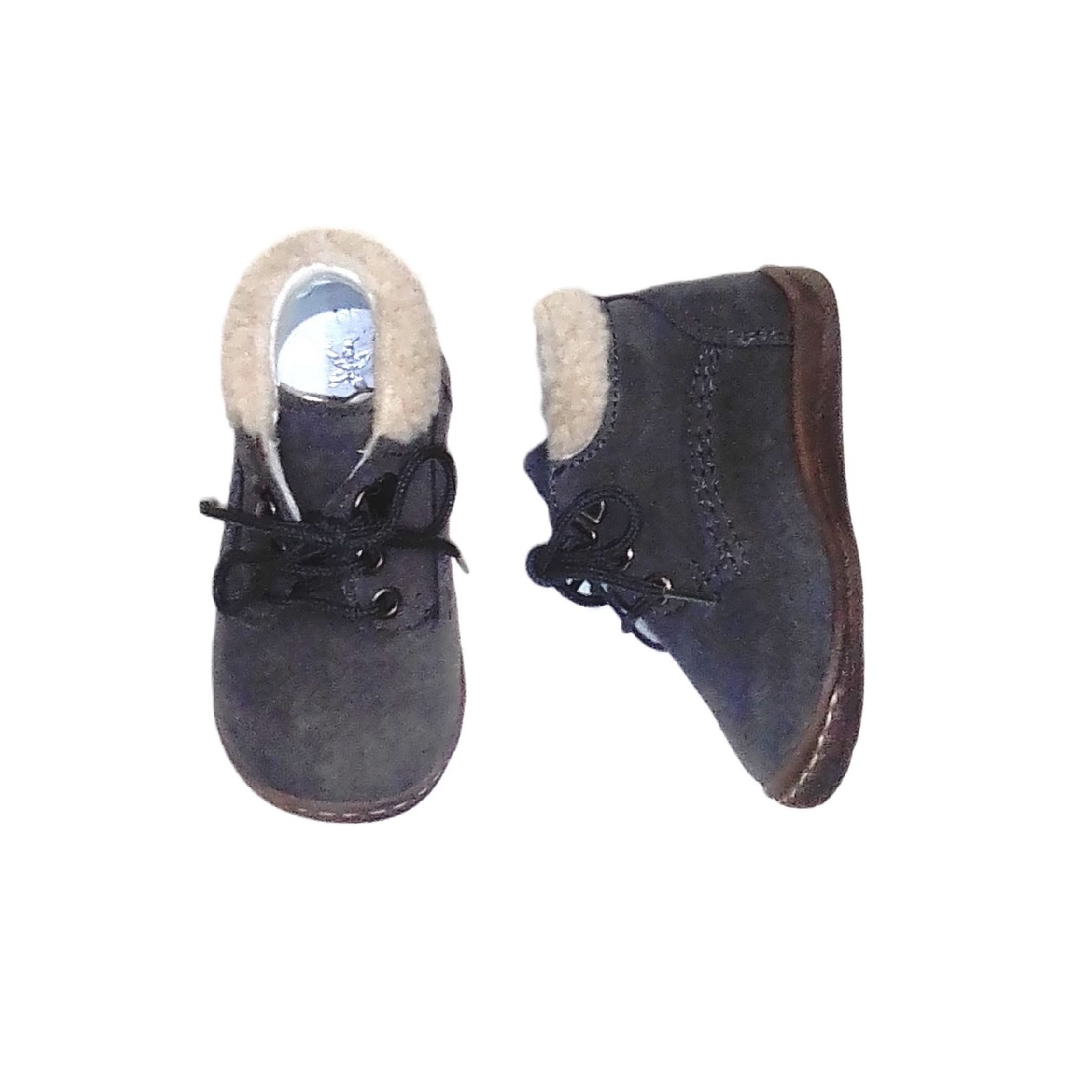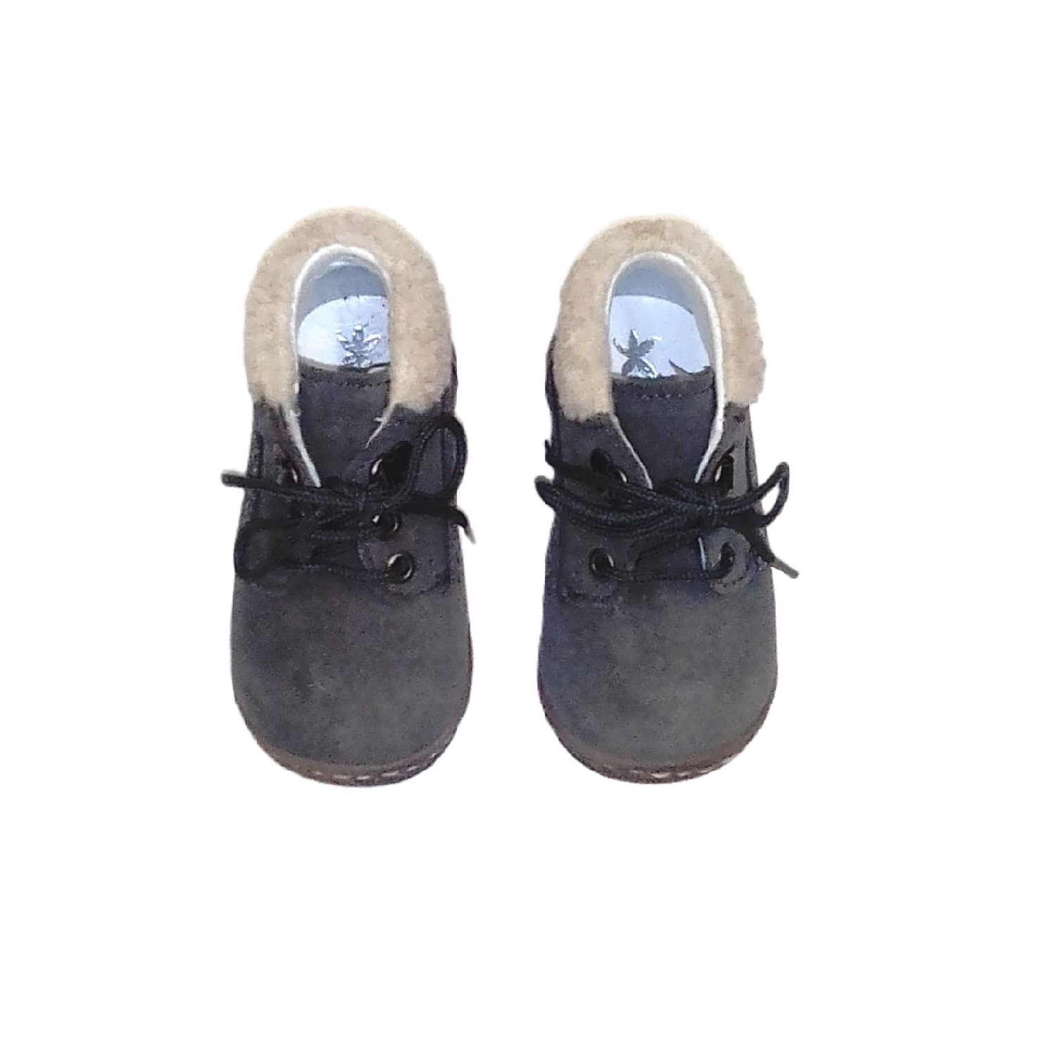 Botas montañeras en piel serraje hidrofugado gris carbon con puntera reforzada. Detalle en el cuello con borreguito.