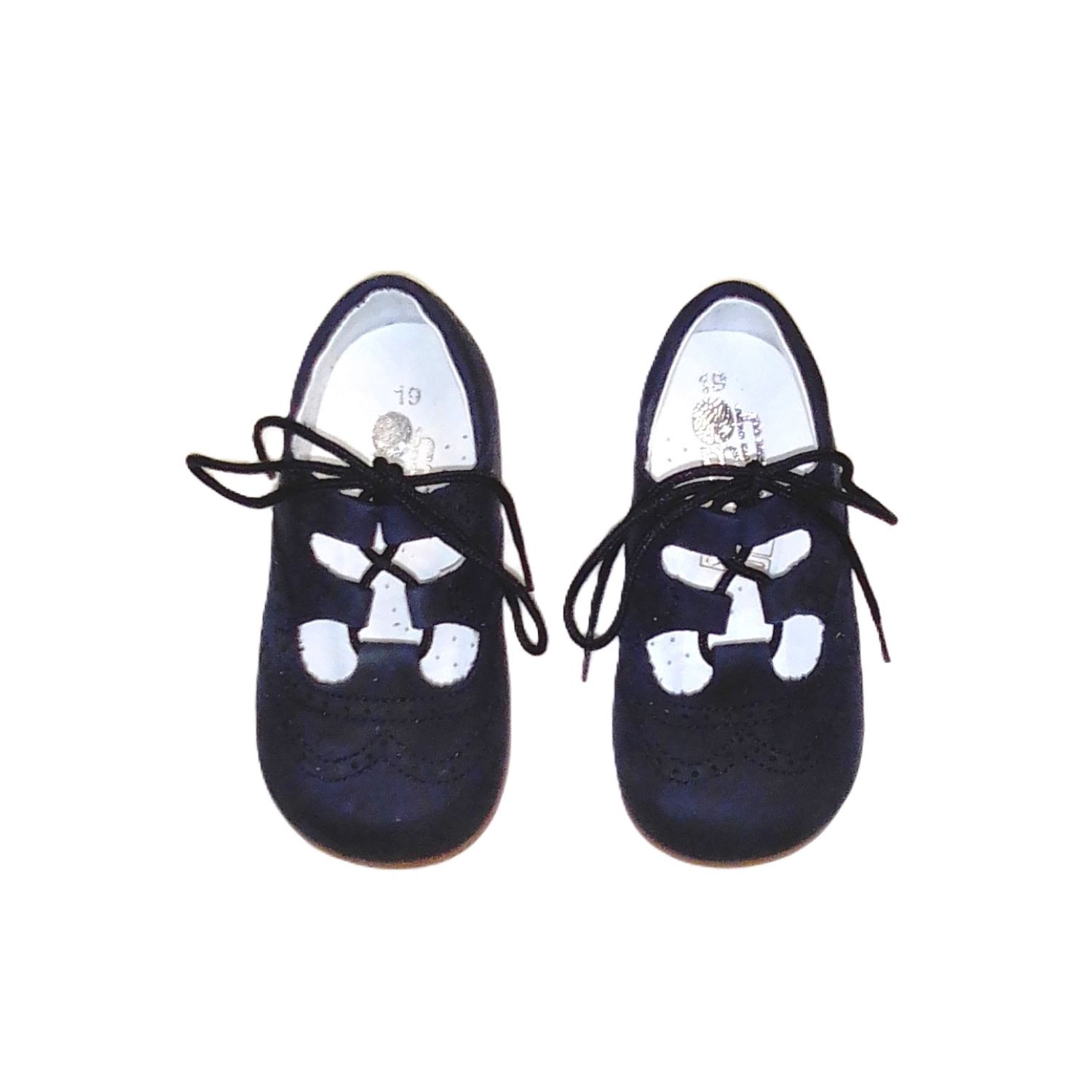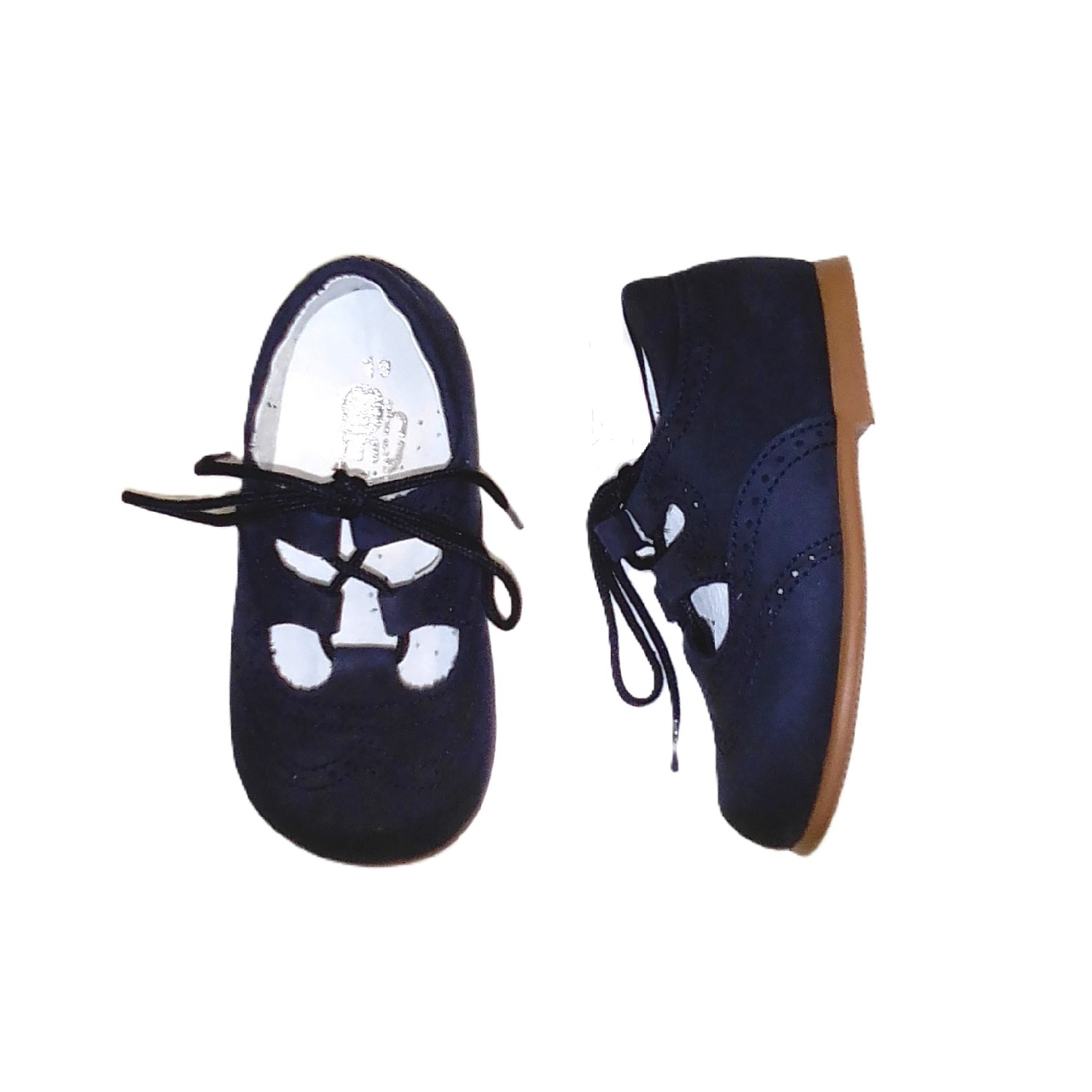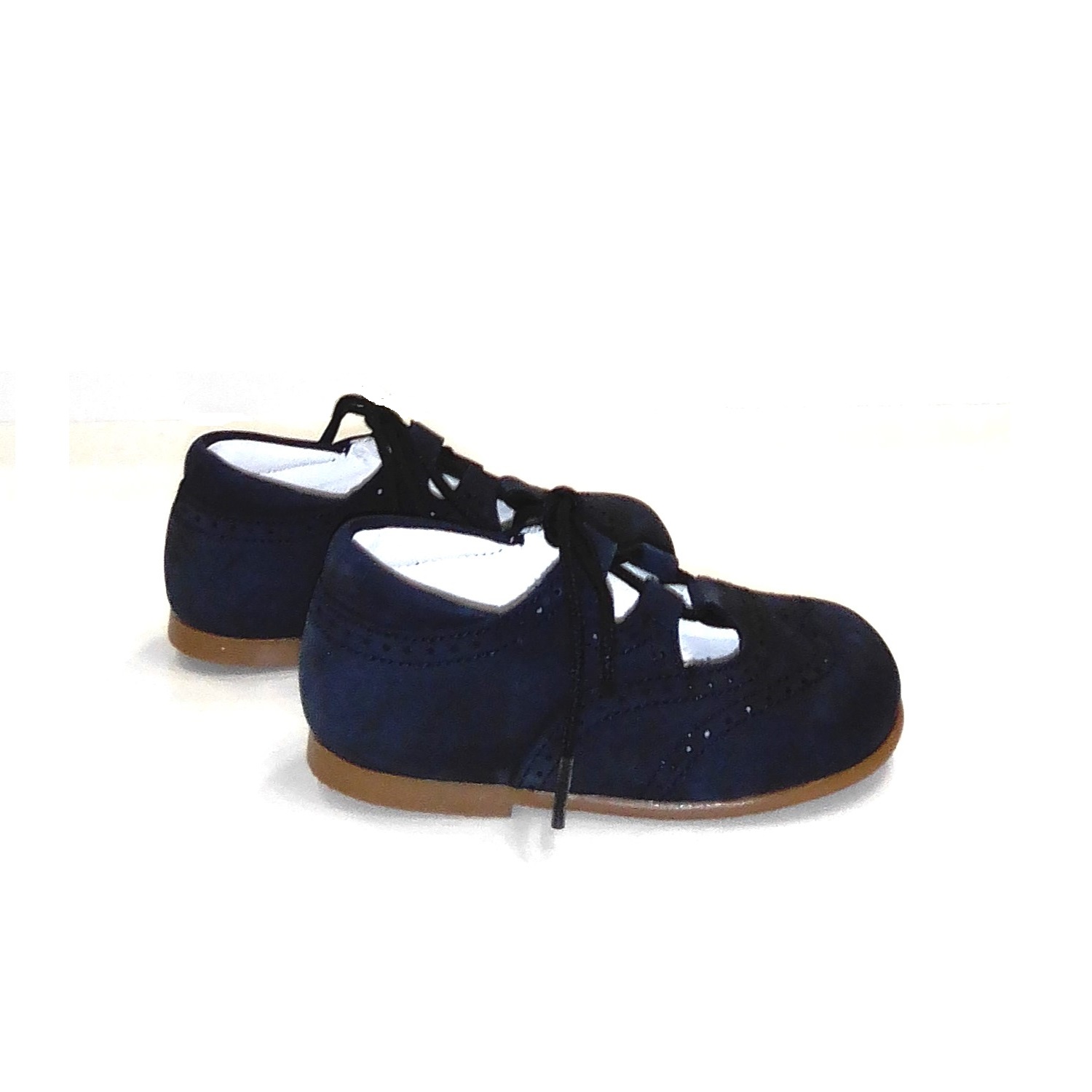 Zapatos de estilo ingles en piel ante azul marino. Coleccion Primeros Pasos. Con cordones