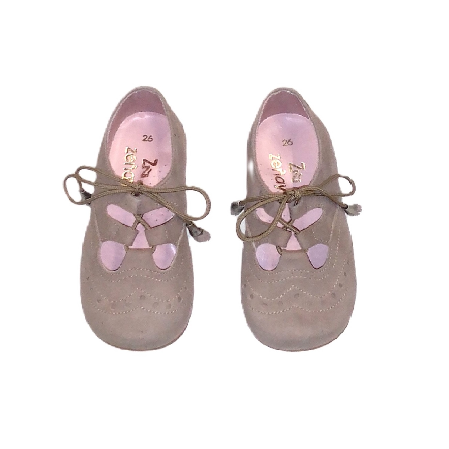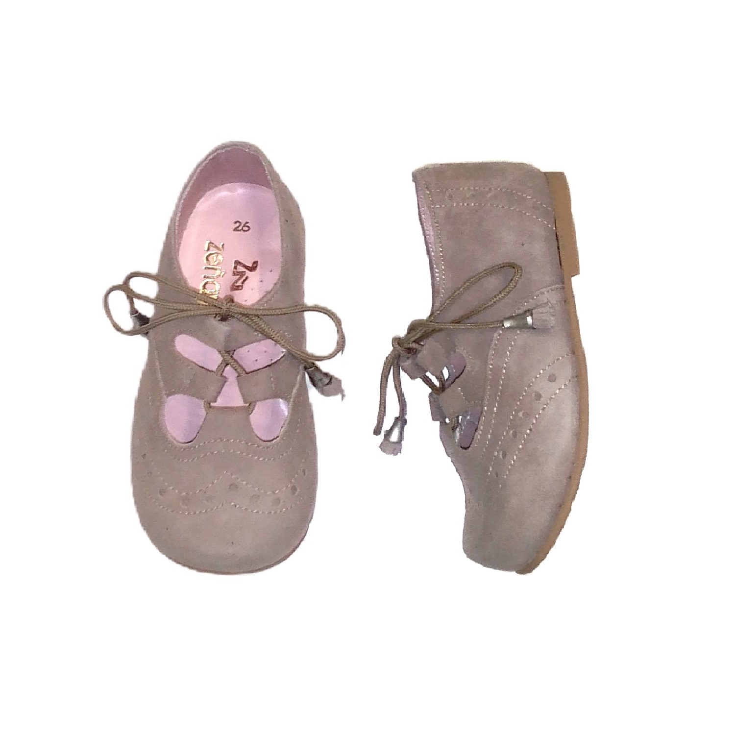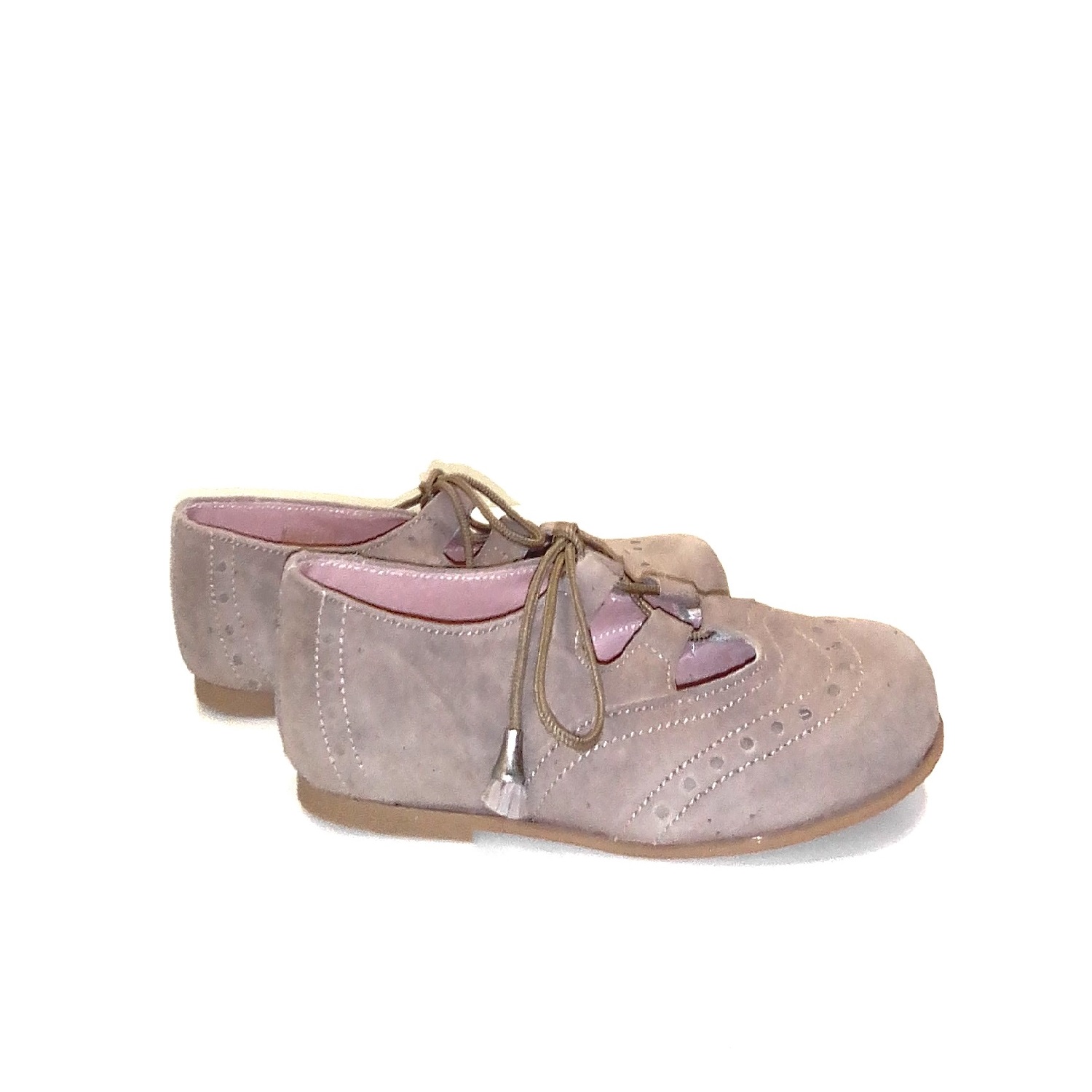 Zapatos de estilo ingles en piel ante taupe. Coleccion Primeros Pasos. Con cordones