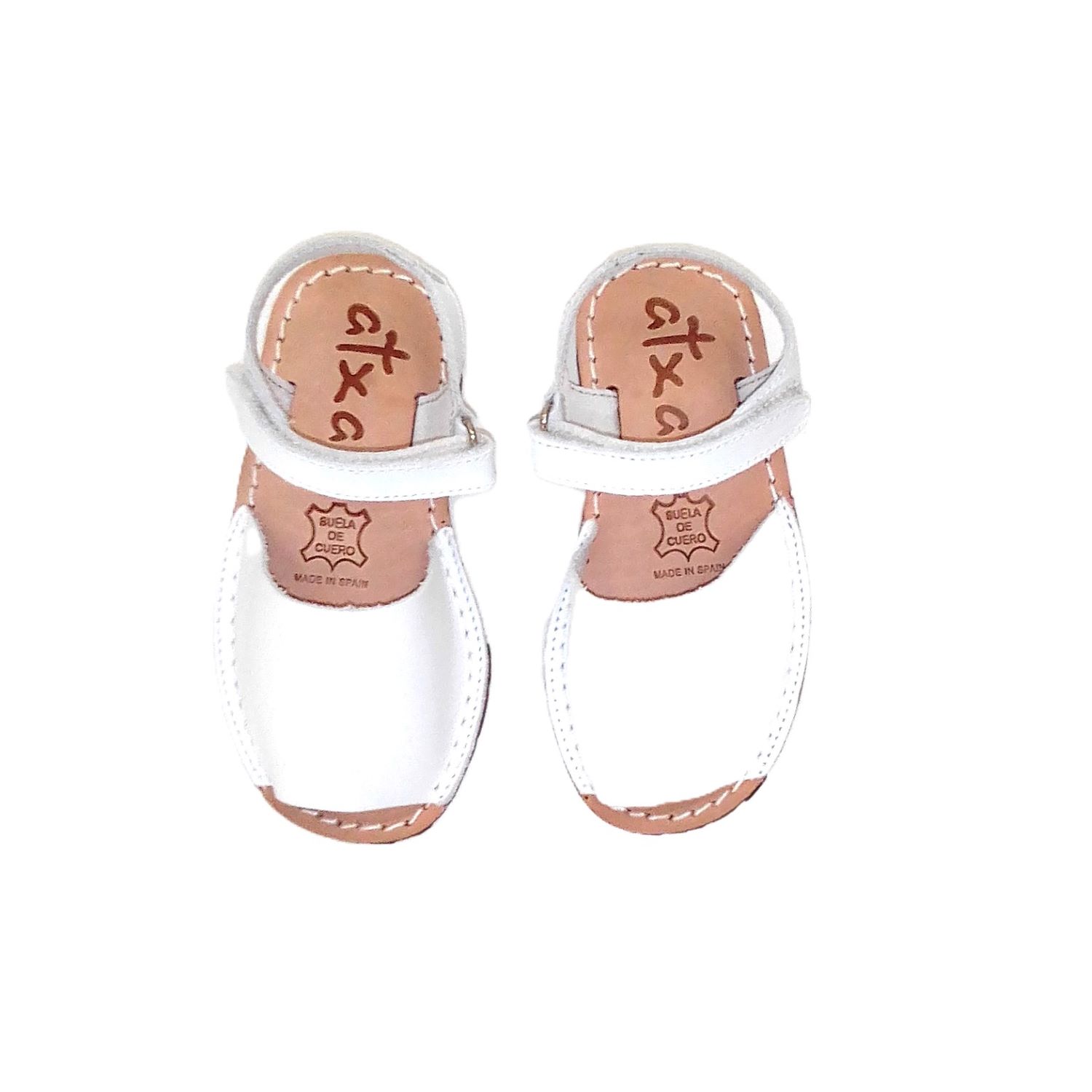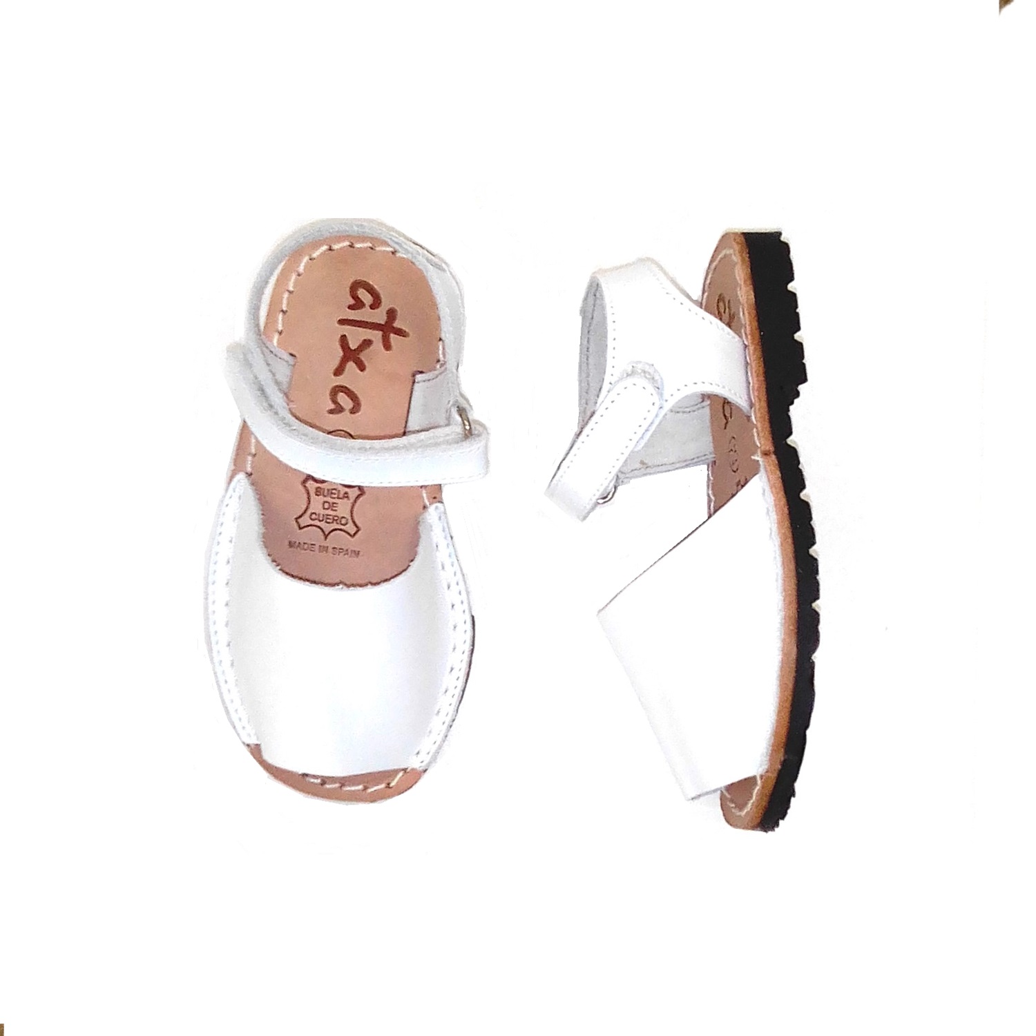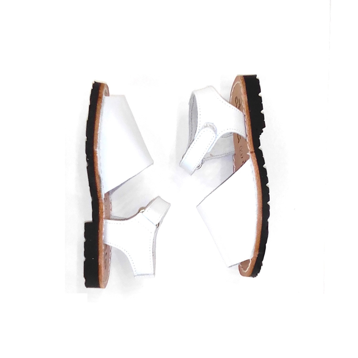 Menorquina en piel napa blanca. Se abrocha con velcro.