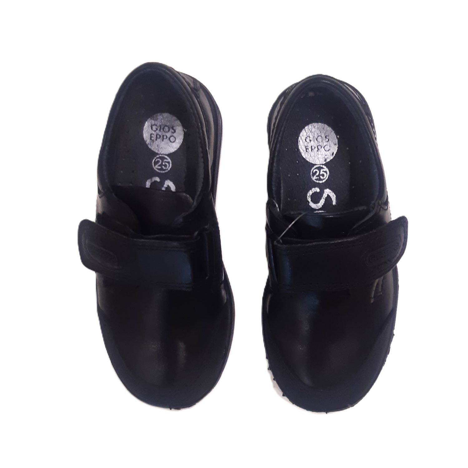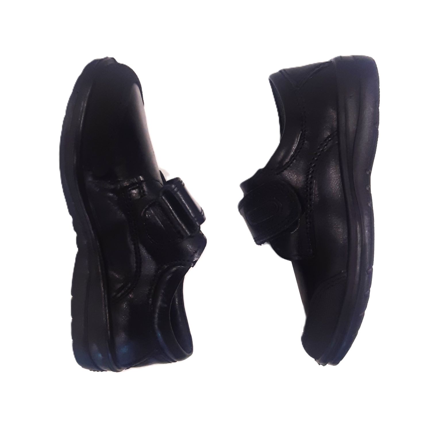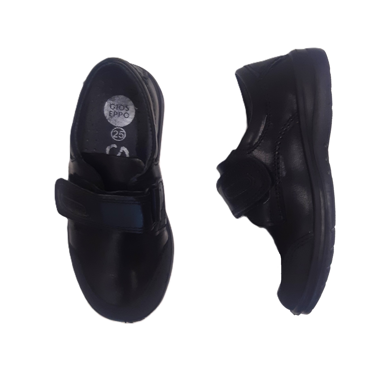 Zapatos colegiales en napa negra, con velcro y puntera reforzada