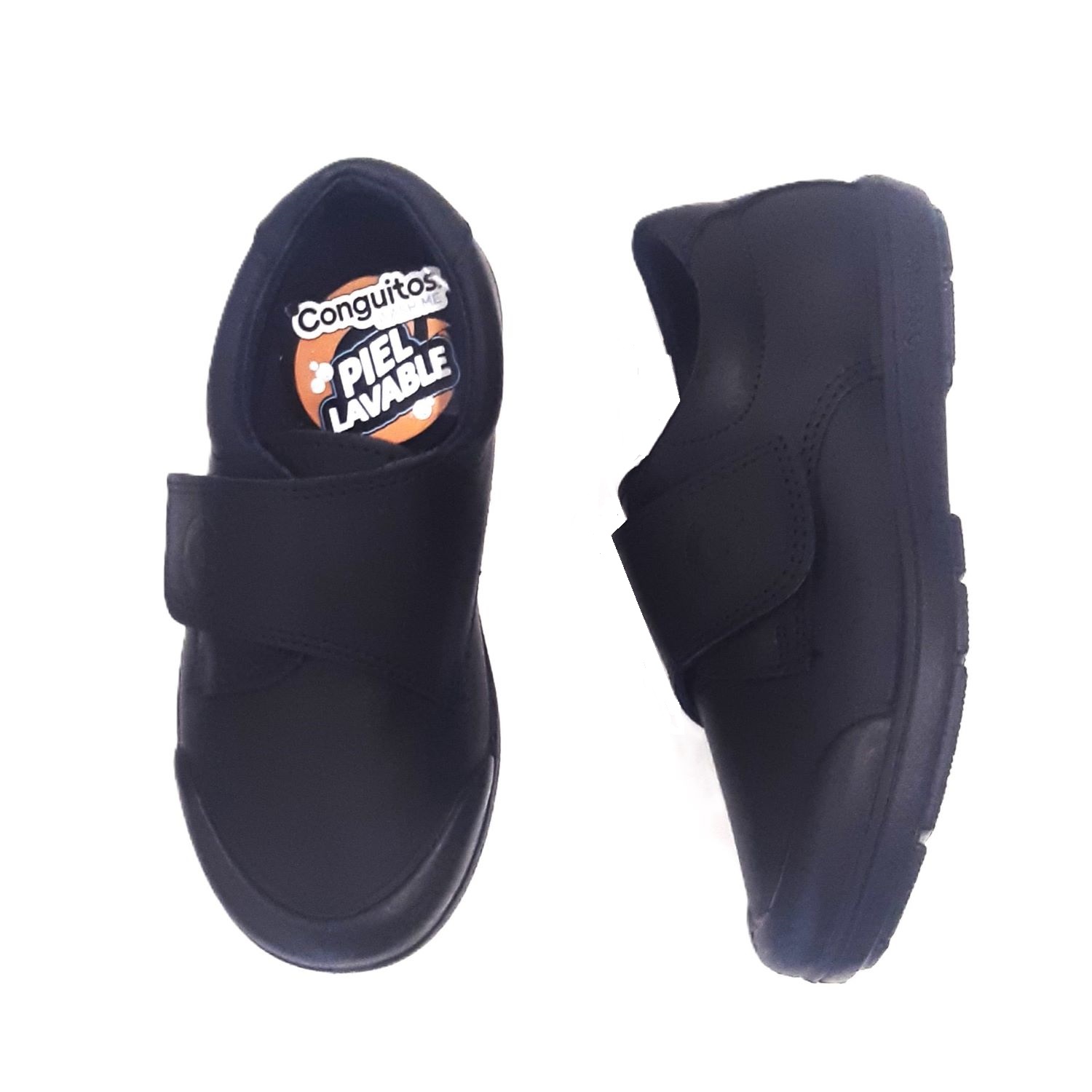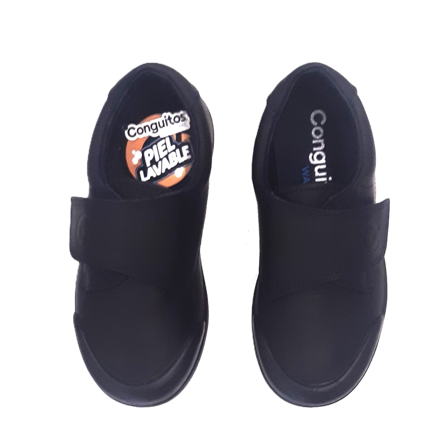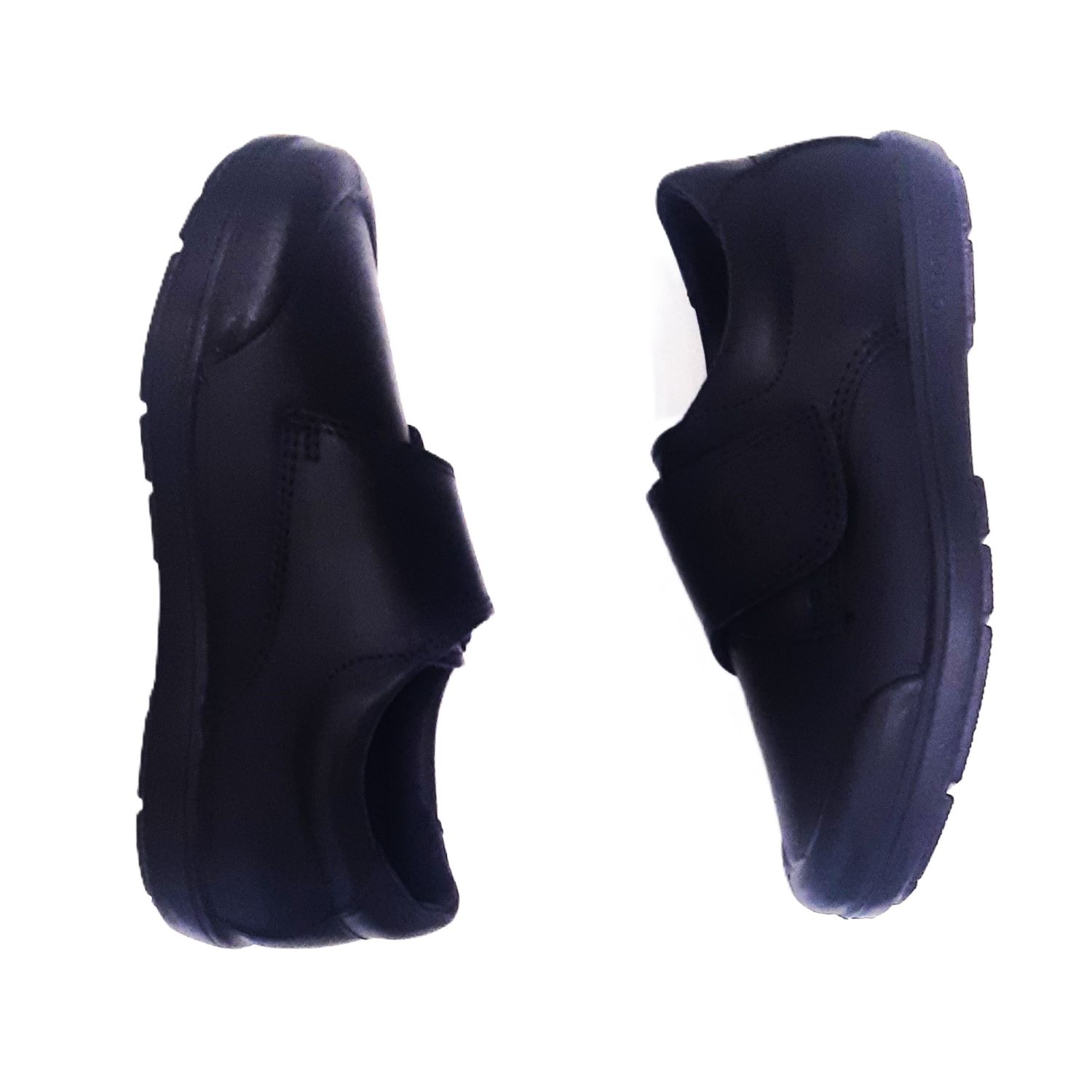 Zapatos colegiales unisex en napa azul marino, con velcro y puntera reforzada, Piel lavable