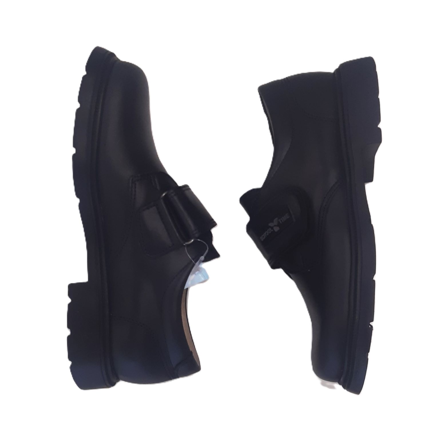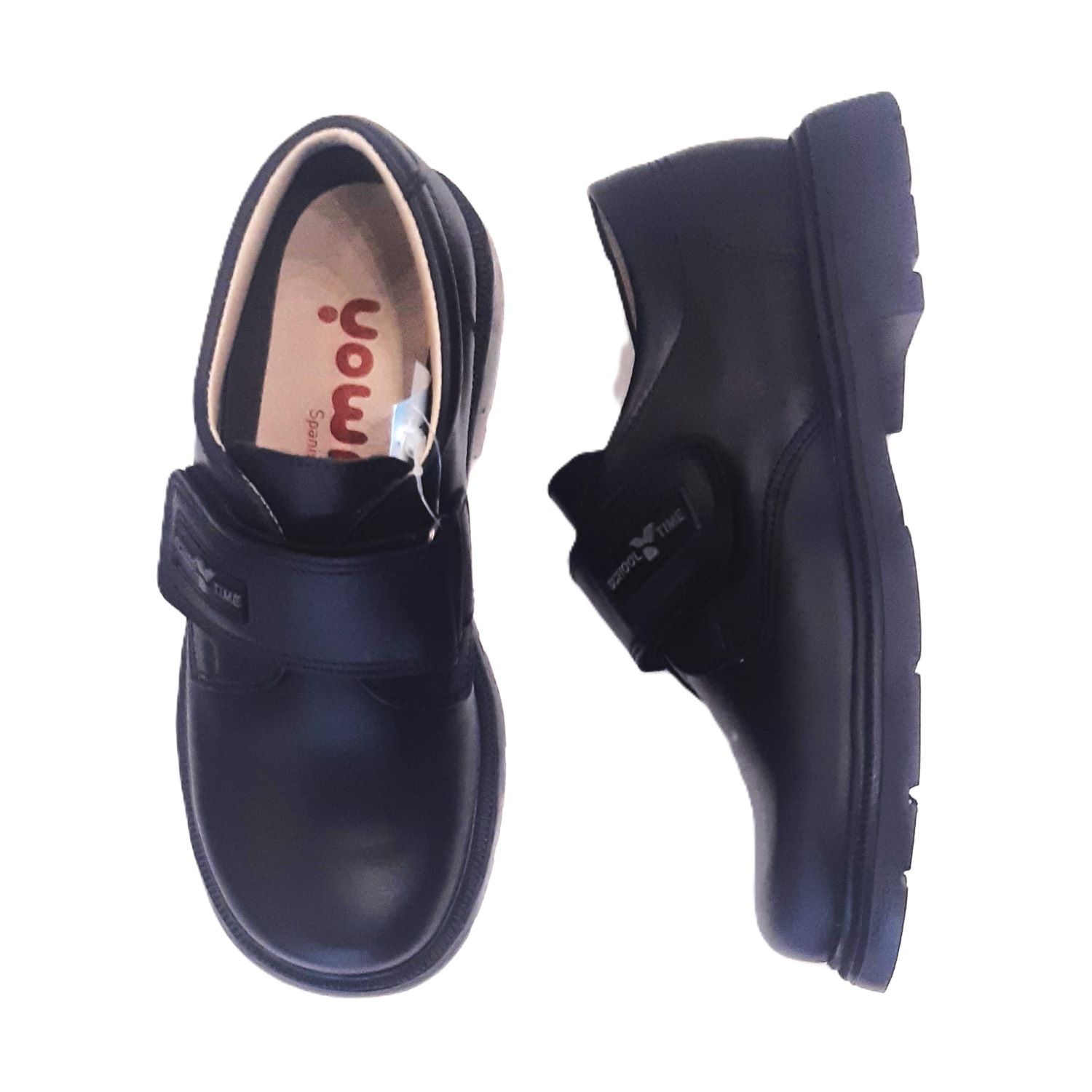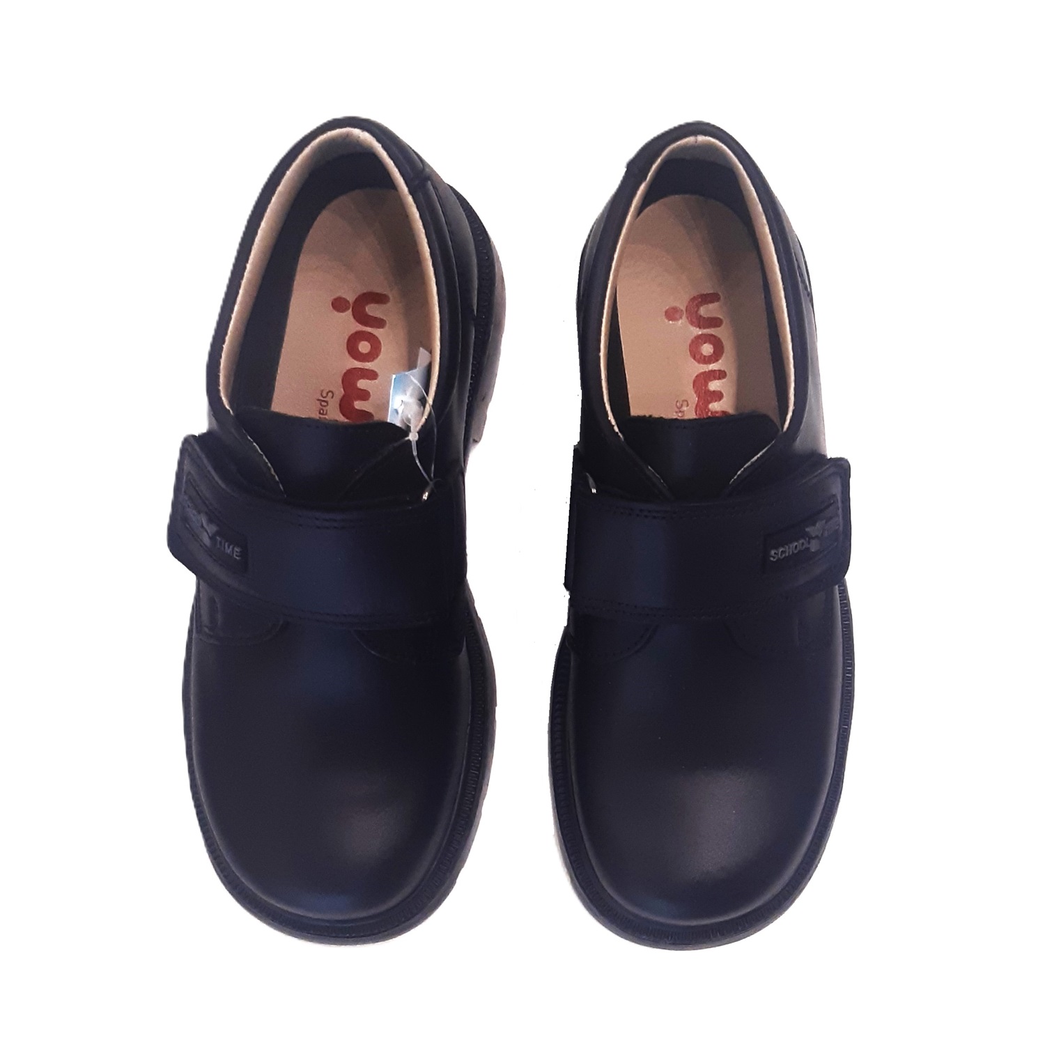 Zapatos colegiales en napa azul marino, con velcro y suela pegada y cosida