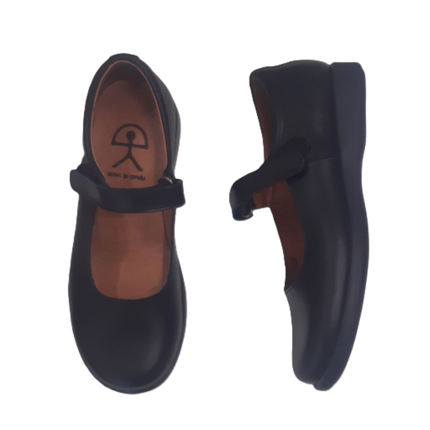 Zapatos colegiales en napa color negro, con velcro y suela antitorsion