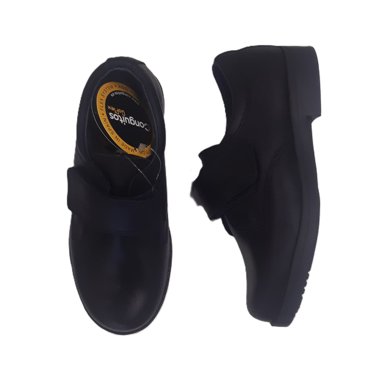 Zapatos colegiales unisex en napa azul marino, con velcro, Tecnologia GOFLEX